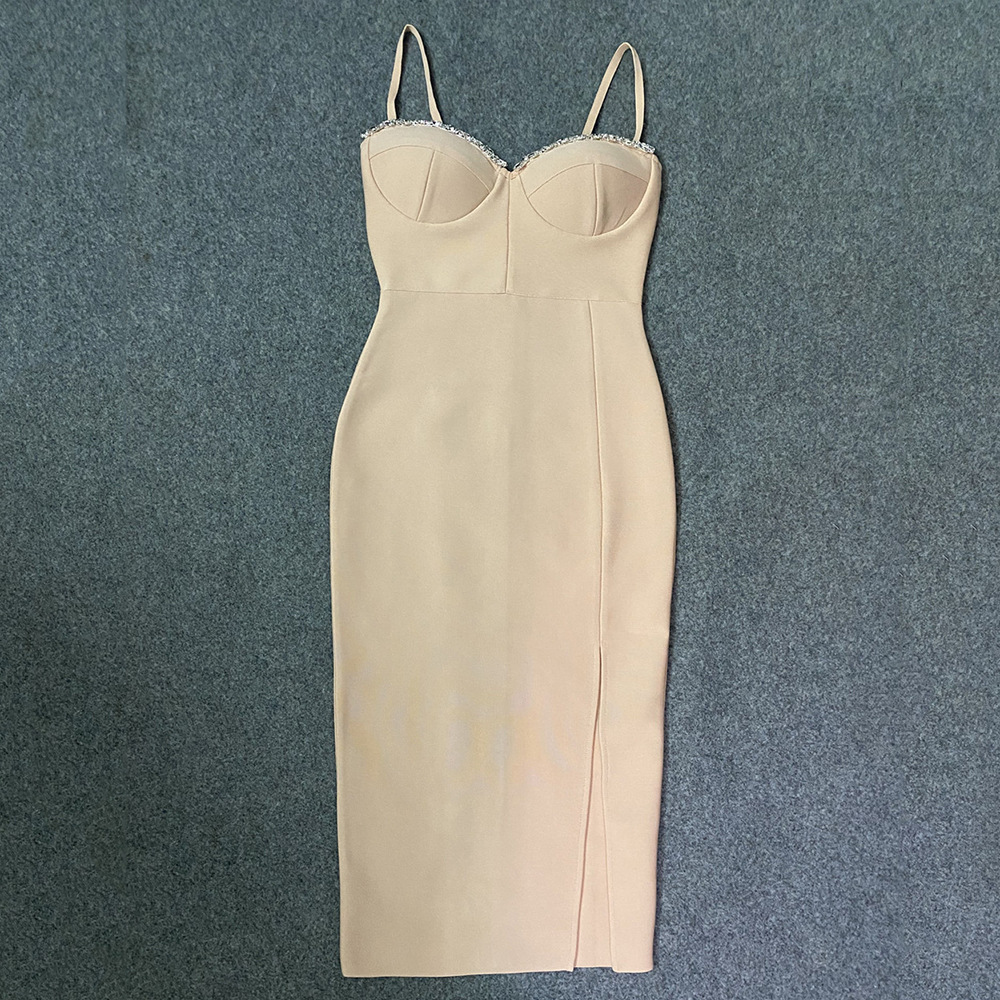 Diamond Socialite Camisole Slit Bandage One Piece Dress Cocktail Dress