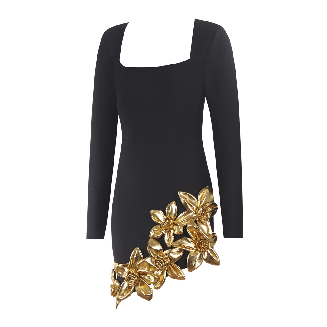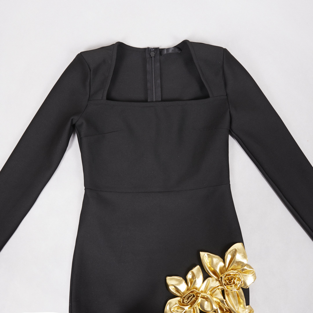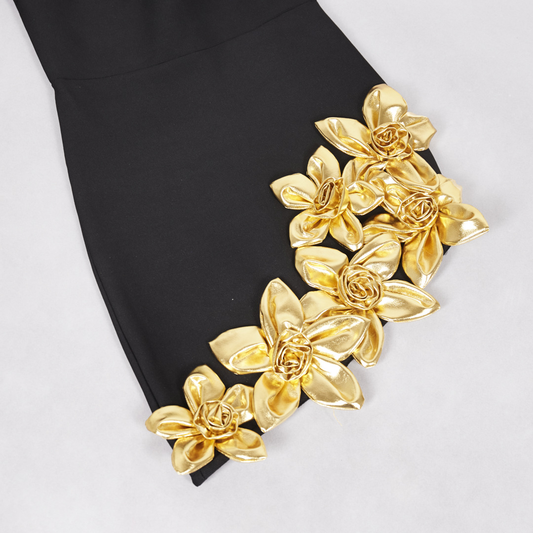 Three Dimensional Order Floral Skinny Sheath Bandage One Piece Dress