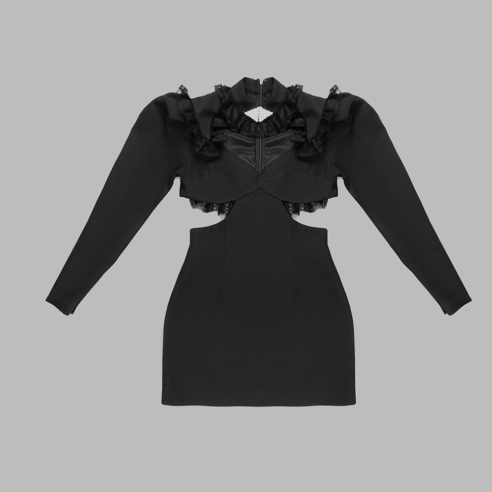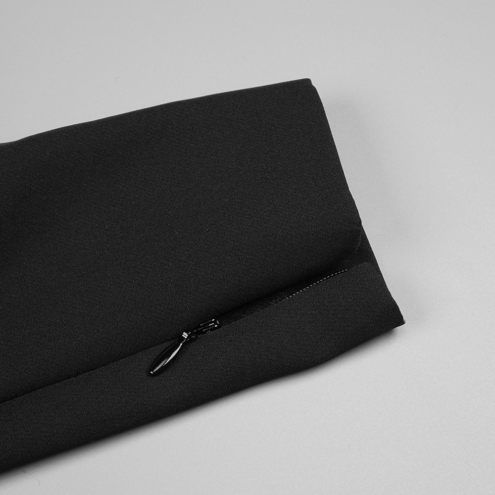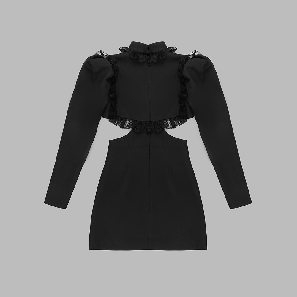 Black Long Sleeve V-neck Cutout Suit Fabric Stretch Slim Fit Padded Shoulder Dress Stitching