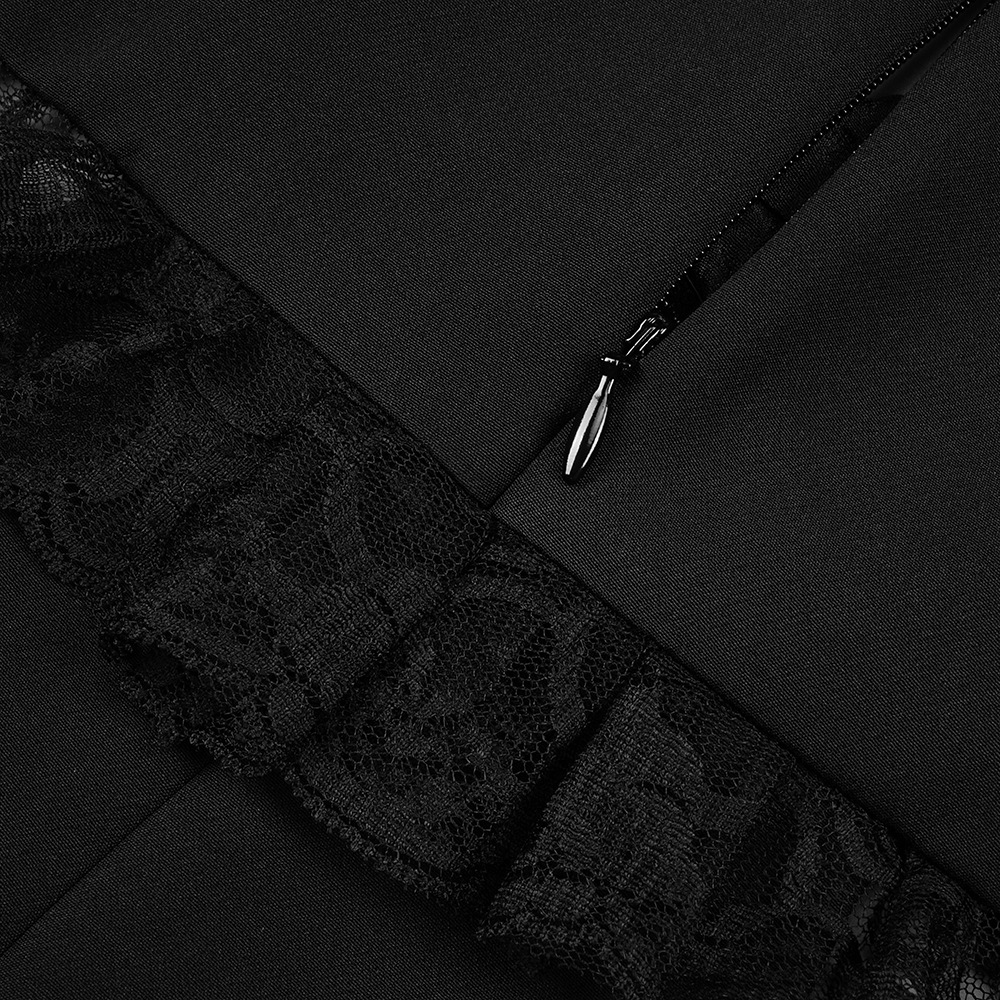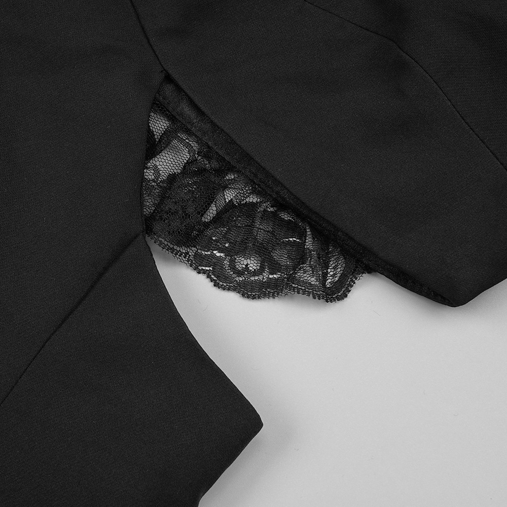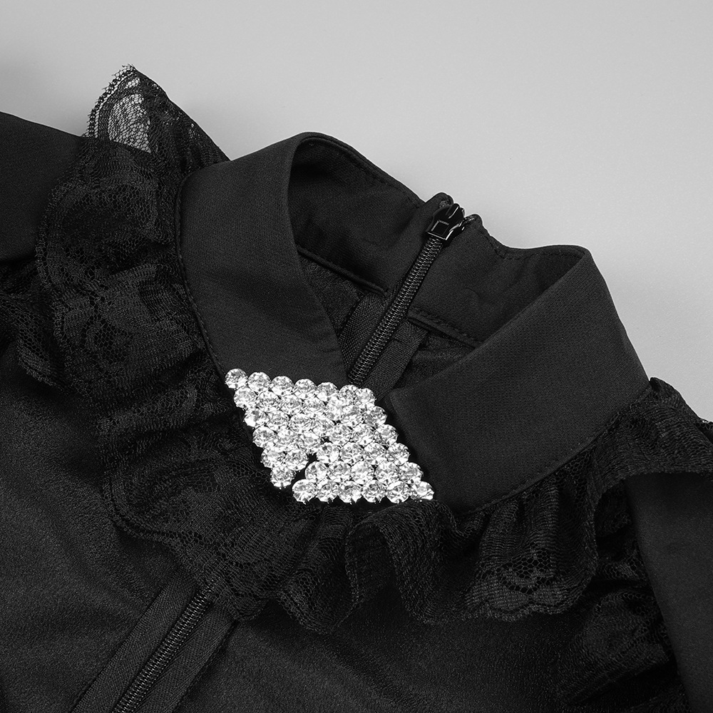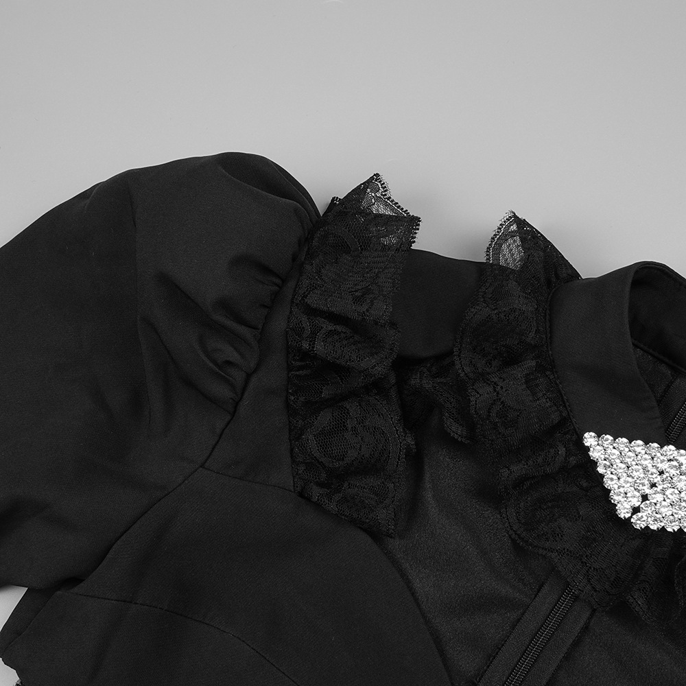 Black Long Sleeve V-neck Cutout Suit Fabric Stretch Slim Fit Padded Shoulder Dress Stitching